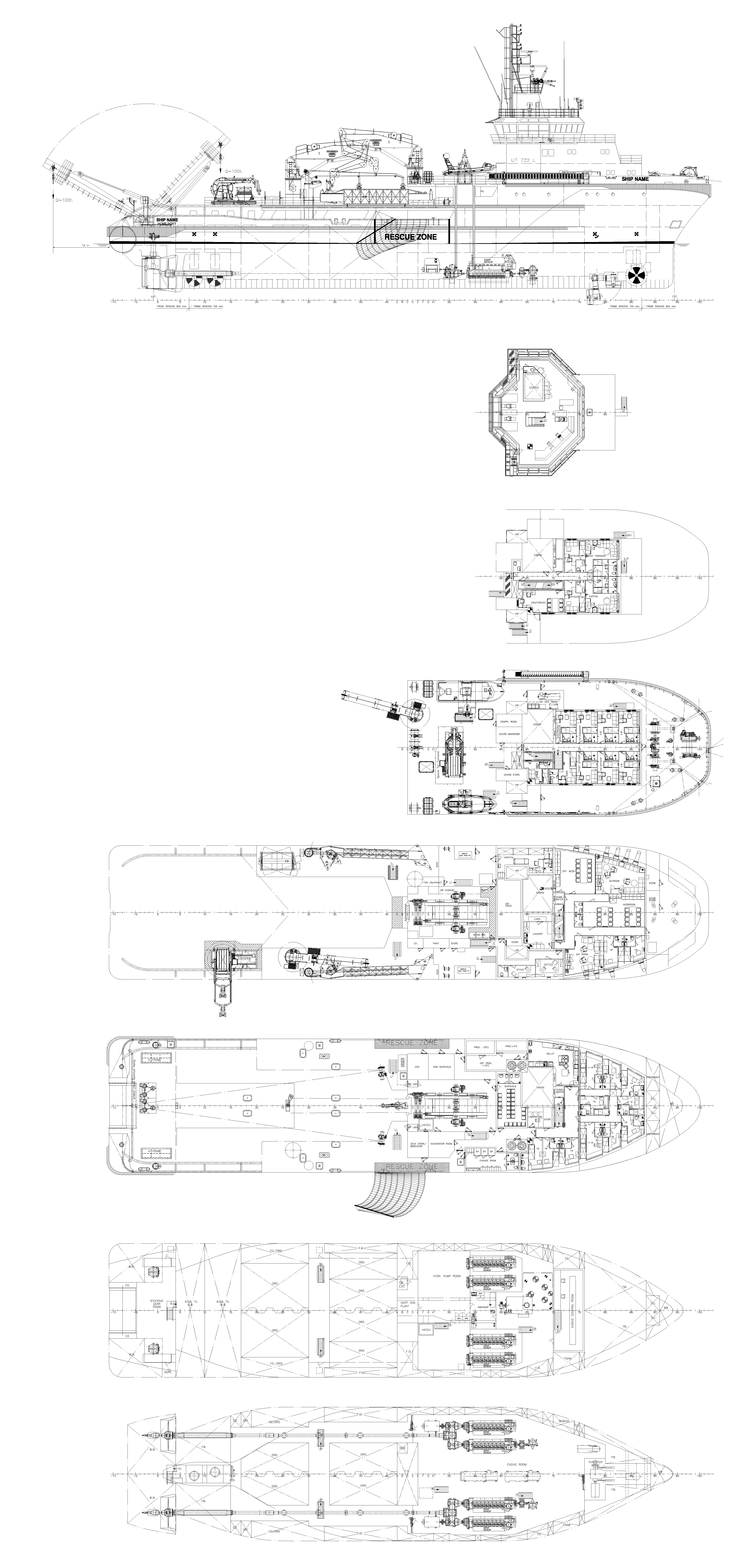 El apoyo a operaciones. Repartidos en sus siete cubiertas estos buques disponen de espacios habilitados y dotados específicamente para el trabajo de los buzos. Cuentan en sus cubiertas intemperie con todos los elementos necesarios para labores de amarre, fondeo, rescate, operaciones de remolque o manejo de anclas. Sus sistemas de posicionamiento dinámico les permiten mantener la posición durante estos trabajos independientemente de las condiciones meteorológicas.