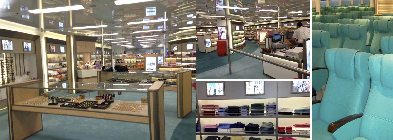 Cada zona de pasajeros cuenta con aseos y cafeterías.