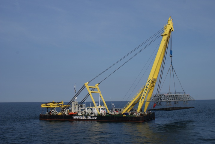 Levantar grandes pesos sobre el mar representa una ventaja sobre el trabajo en tierra, ya que se conocen perfectamente el comportamiento y las características del agua, mientras que en tierra, sin un estudio previo del subsuelo, podemos encontrarnos con sorpresas desagradables.