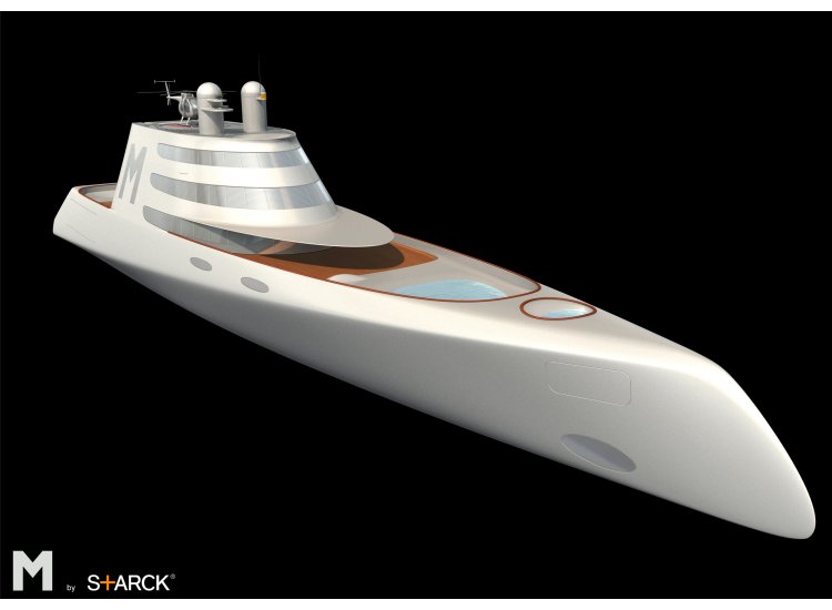Además del diseño exterior, el diseñador francés Philippe Starck se encargó también de los interiores del yate, casi 2.200 metros cuadrados repletos del lujo y las excentricidades habituales (muebles con piel de cocodrilo, grandes espejos y superficies brillantes por doquier) en un barco de este tipo. El camarote principal ocupa 230 metros cuadrados, y existen otros seis para invitados con mamparos desmontables para convertirlos en cuatro grandes camarotes.