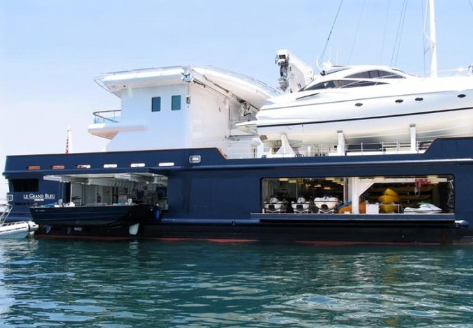 Le Grand Bleu, construido en el año 2000 bajo un diseño de Stefano Pastrovich y perteneciente al multimillonario ruso Eugene Shvidler, es uno de los diez yates más grandes (113 metros de eslora) y más lujosos del mundo.