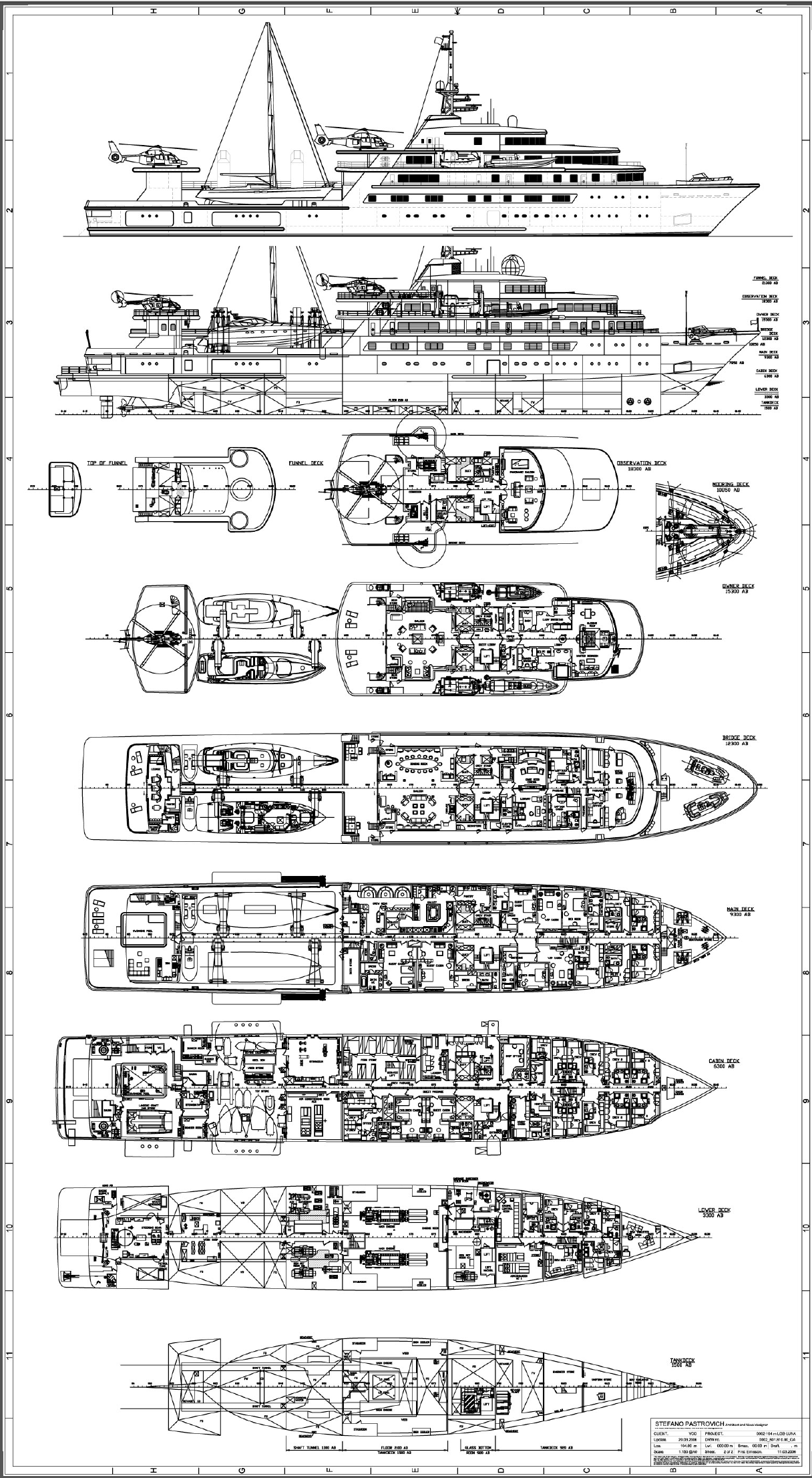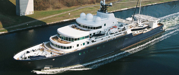 Y su «garaje». Además del helicóptero que transporta, sobre la cubierta hay espacio para un velero de 22 metros de eslora y un yate a motor de 20 metros de eslora. Y en su interior, un minisubmarino, un jeep Land Rover y una lancha de desembarco para transportarlo, motos de agua, y así hasta la treintena de embarcaciones auxiliares.
