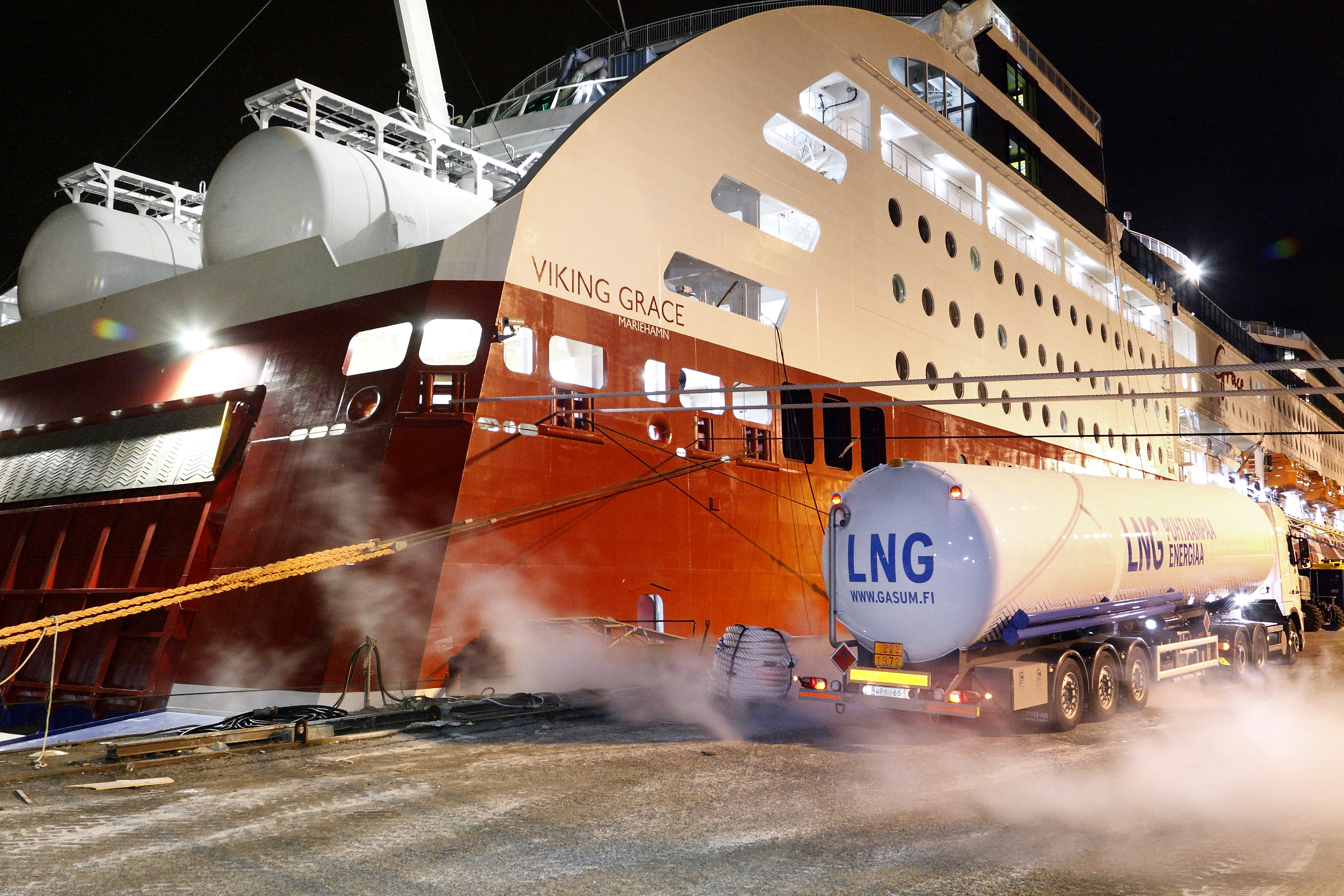 El MS Viking Grace de la compañía Viking Line se convirtió en enero del 2013 en el primer ferry de pasajeros de gran tamaño propulsado por gas natural licuado (LNG).