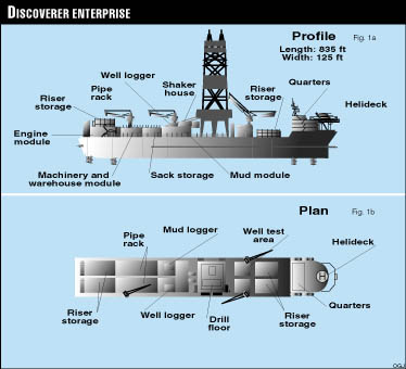 Construido en 1998 en el astillero español de Astano, el Discoverer Enterprise es un buque de perforación de la compañía americana Transocean. Es el primero de una serie continuada con el Discoverer Spirit y el Discoverer Deepseas. Sus armamento final se completó en el astillero Ingalls de Mississippi, EE.UU.