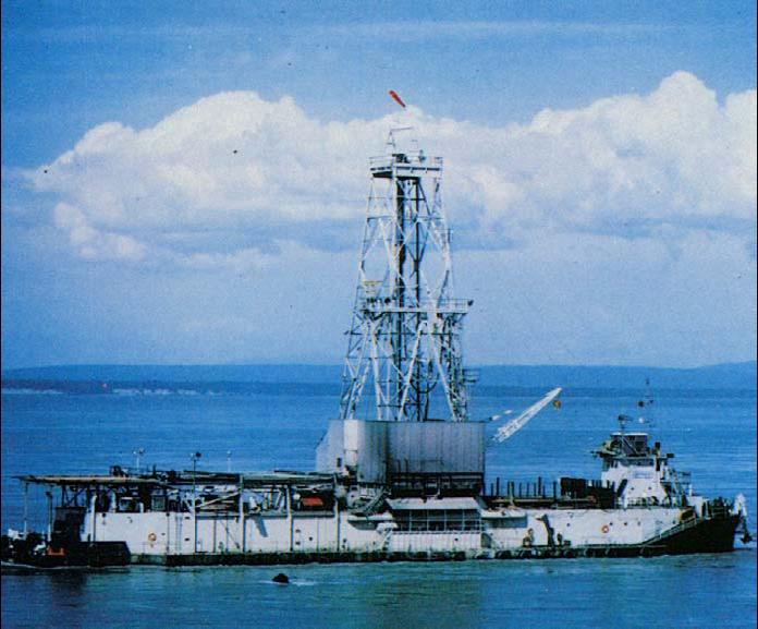 En la década de los años cuarenta del siglo XX, en las costas de California, ante la necesidad de perforar cada vez más lejos de la costa, se comenzó el desarrollo de los buques de perforación, adaptando en un principio buques de guerra de la US Navy.