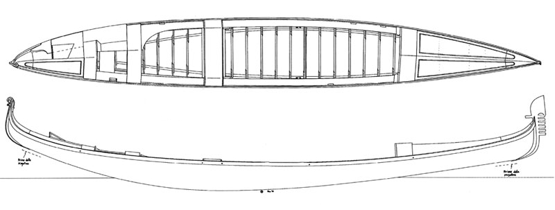 Otra característica evidente es el enorme arrufo. La proa, y sobre todo la popa, son muy altas. De esta manera se tiene una pequeña eslora de flotación, que junto con el poco calado hacen que la embarcación sea muy maniobrable.