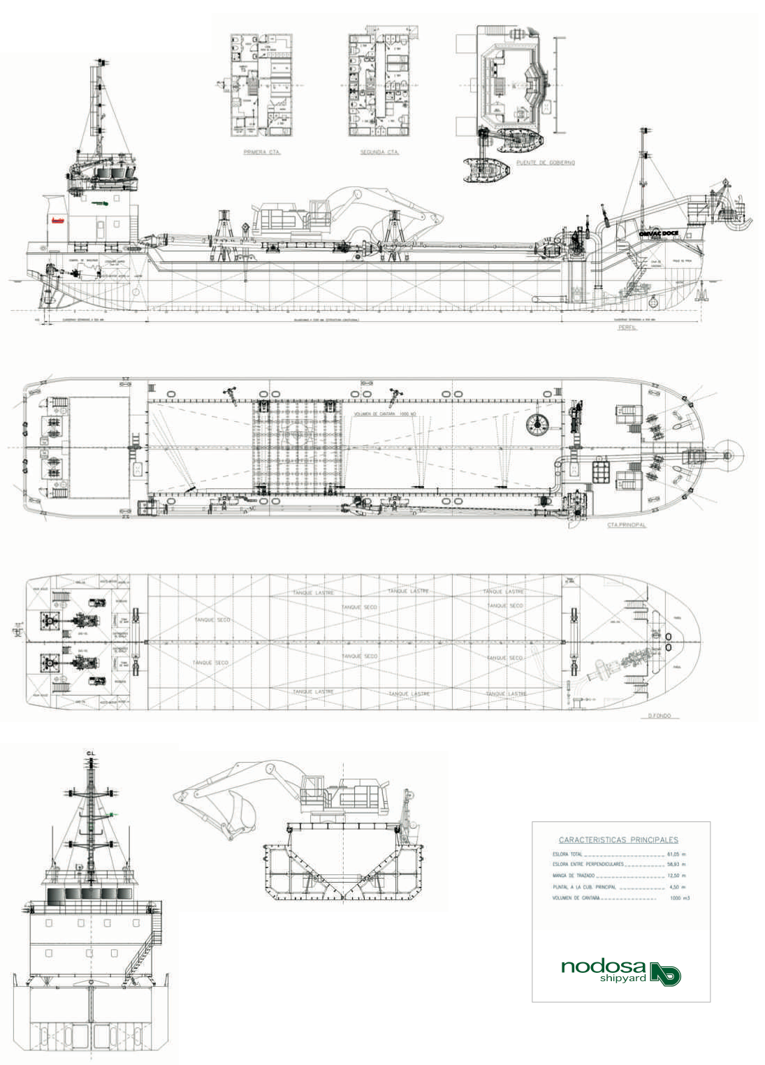 Los materiales con los que puede trabajar este buque van desde la arena hasta grandes rocas. Para el vaciado de la cántara, su casco se abre por la mitad (de ahí la tipología de draga de casco partido) accionado por dos grandes cilindros hidráulicos que permiten una apertura de hasta 41º, equivalente a unos cuatro metros de separación.