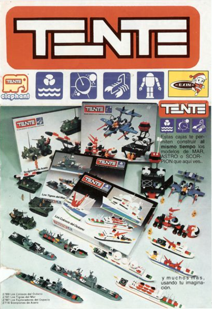 El catálogo de la serie Mar, renombrada posteriormente como Oceanis no dejaba de crecer: nuevos barcos, y ahora puertos, refinerías y plataformas petrolíferas. Siempre acompañados por las otras series de la marca: Astro (naves espaciales), Ruta (camiones), Aire (aviones) o Roblock (versión de los populares Transformers). Era la época dorada de TENTE, en plenos años 80, en los que incluso tuvo que hacer frente a una demanda de Lego por plagio que acabaría ganando la marca española. Acuerdos con la americana Hasbro permitieron la exportación del producto de Exin a Estados Unidos y Japón, y la apertura de una filial en México distribuyó TENTE por algunos países latinoamericanos.