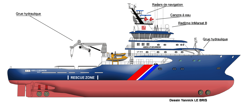 Construido en el año 2004 en los astilleros de Myklebust Verft (Gdansk, Polonia) siguiendo un diseño de Rolls-Royce, el Abeille Bourbon es un remolcador de altura francés con base en el puerto de Brest que realiza tareas de intervención, asistencia y salvamento, en el carril de Ouessant en el mar de Iroise (Francia). El buque tiene un gemelo, el Abeille Liberté, que tiene su base en el puerto de Cherburgo.