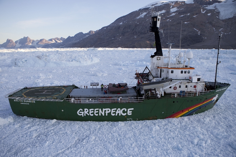 En septiembre de 2013, el buque se encontraba en el Ártico participando en una protesta contra la extracción de petróleo en un ecosistema tan vulnerable. Cuando la tripulación del buque intentó asaltar la plataforma petrolífera Priraslomnaja, propiedad de la compañía energética Gazprom, los guardacostas de Rusia abordaron y tomaron el control del Arctic Sunrise, deteniendo a toda la tripulación, 30 personas de diferentes nacionalidades.