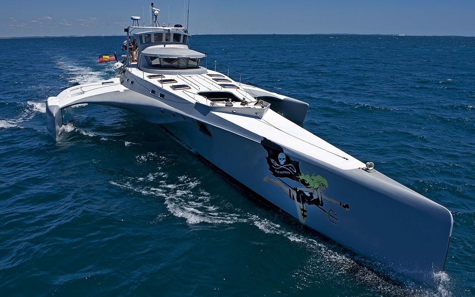 Diseñado y construido en 2005 para superar el récord del mundo de la circunnavegación más rápida de una embarcación a motor, el Earthrace lo consiguió al segundo intento en 2008. Adquirido posteriormente para la sociedad conservacionista Sea Shepherd y renombrado como Ady Gil, el buque acabó hundido en el fondo del océano Antártico tras chocar con un buque ballenero japonés en 2010.