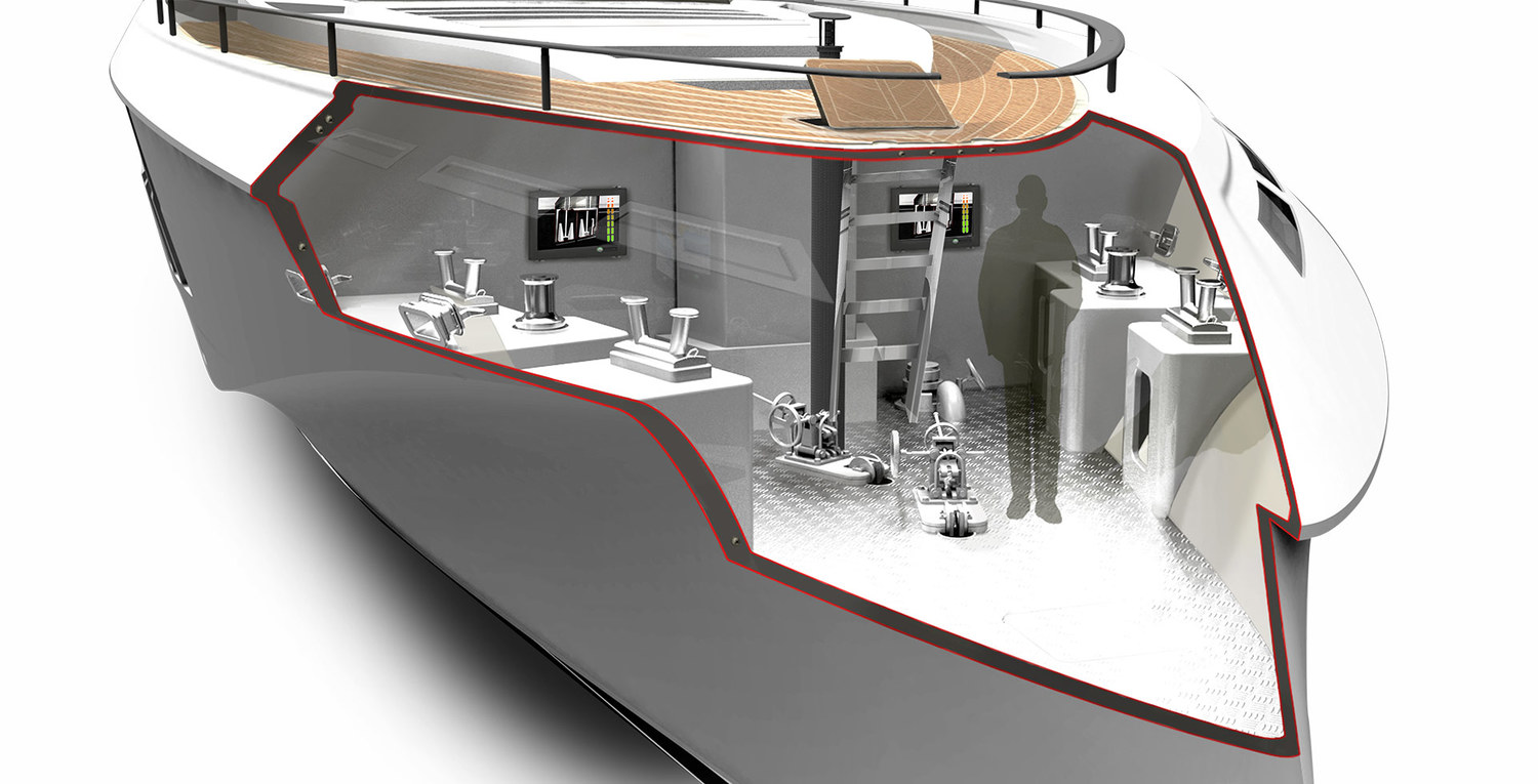 La «mooring room» escondida bajo la cubierta (fuente: palmerjohnson.com)