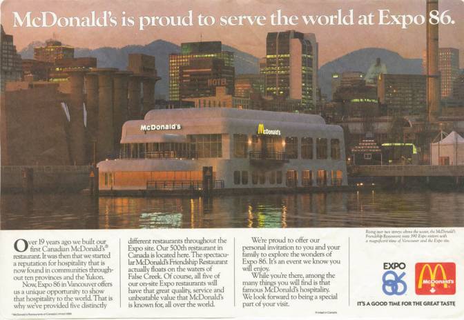 McDonald’s is proud to serve the world al Expo 86 (fuente: answcdn.com)