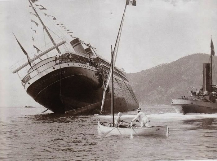 El Principessa Jolanda comienza a escorarse a babor (fuente: Wikipedia)
