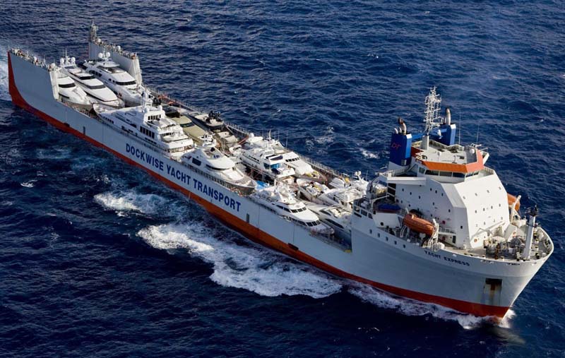 El Yacht Express (2007) de Dockwise, construído en el astillero chino de Yantai Raffles, es el buque más grande del mundo especializado en el transporte de yates. Con 209 metros de eslora por 32,2 metros de manga, sus 5.115 metros cuadrados de cubierta de carga pueden transportar hasta 5.000 toneladas de peso.