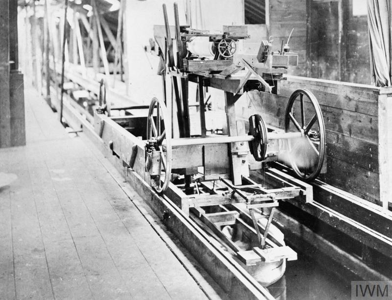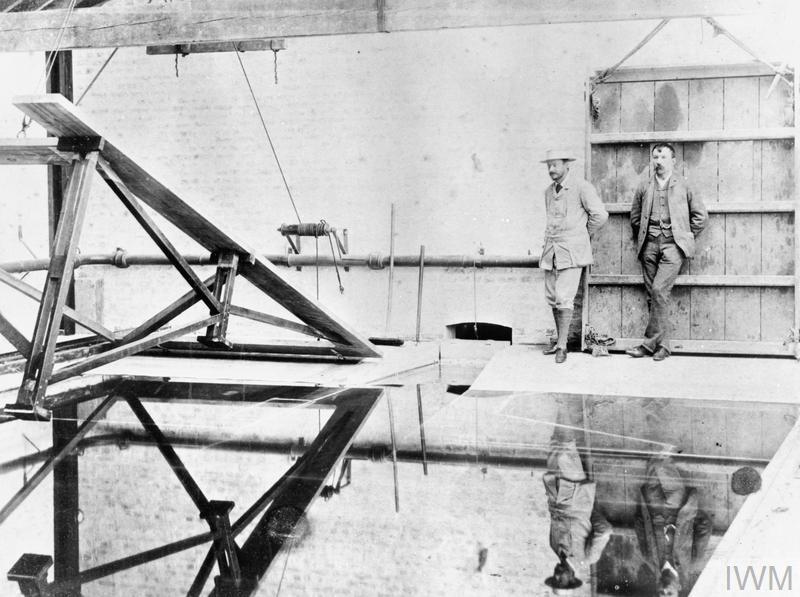 El carro de madera arrastrando un modelo en el canal de Torquay. Copyright: © IWM. Original Source: http://www.iwm.org.uk/collections/item/object/205191748