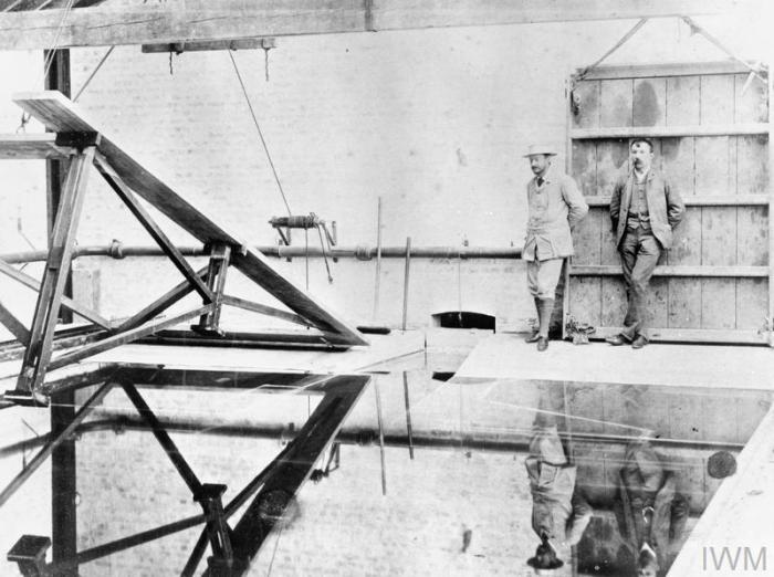 William Froude (a la izquierda) en el primer canal de experiencias. Copyright: © IWM. Original Source: http://www.iwm.org.uk/collections/item/object/205191745