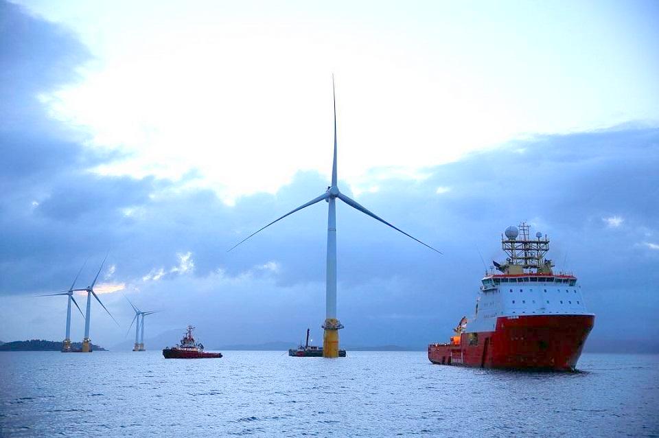 El proyecto Hywind de Statoil, el primer parque eólico marino flotante del mundo, ha sido conectado este mes a la red. Los cinco aerogeneradores que forman la instalación suministrarán en conjunto hasta 30 megavatios de energía a la red.