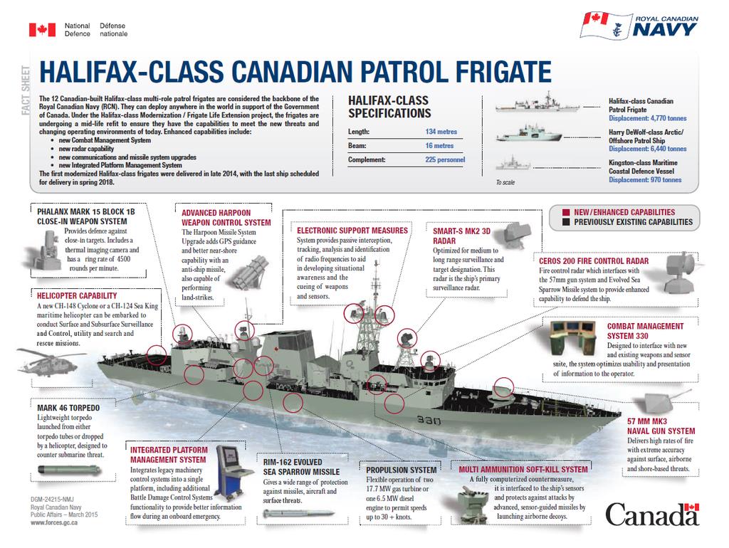 Tomando como parte del título de este post la famosa tercera novela del escritor John Le Carré El espía que surgió del frio publicada en el año 1963, el ministerio de defensa canadiense decidió la construcción de doce fragatas de la clase Halifax botadas entre los años 1988 y 1995 que fueron puestas en servicio entre los años 1992 y 1997. Con un desplazamiento en navegación de 4.770 toneladas, han sido consideradas por la Royal Canadian Navy (RCN) como la columna vertebral de su dispositivo marirtimo de defensa y han significado un paso de gigante desde el papel jugado por la RCN en la Segunda Guerra Mundial hacia una modernización de su flota, siendo considerada la cuarta flota de buques de guerra mas relevante a nivel mundial.