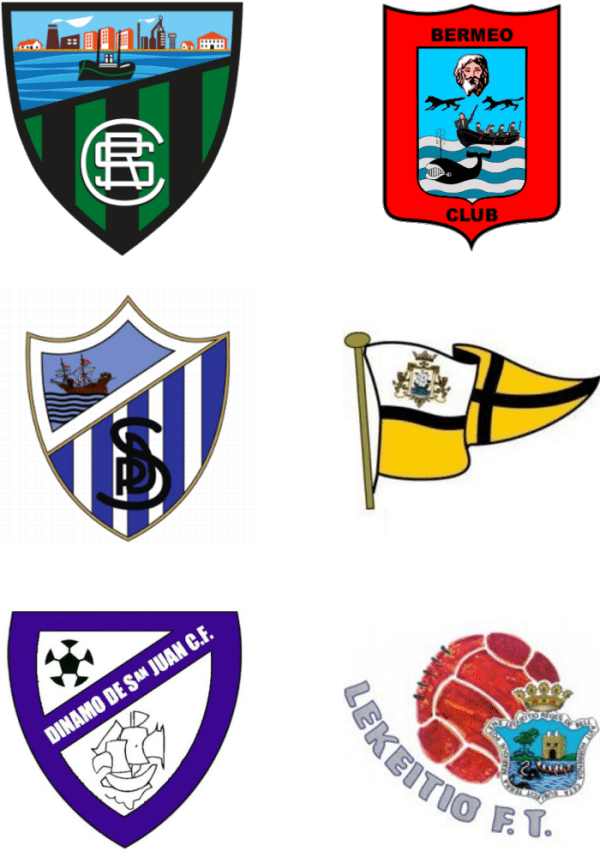 Aunque no es el caso del principal equipo de la zona, el Athletic Club, como nos apunta @DaniGarciaSoto los alrededores de Bilbao suman una cantidad importante de equipos con barcos en su escudo. Tenemos por ejemplo al Sestao River Club, en el que aparece al igual que en el escudo del municipio al que pertenece el crucero Vizcaya, construido por la Sociedad Astilleros del Nervión de Sestao en 1891 y hundido durante la batalla naval de Santiago de Cuba. El escudo del Bermeo replica también el del municipio, incluyendo una ballena y un bote ballenero con los remeros y el arponero en proa en disposición de lanzar el arpón, representando la actividad que antiguamente desarrollaban los bermeanos en la pesca de la ballena, desde el siglo XI hasta el s. XV aproximadamente. Otros equipos vascos con barcos en su emblema son la SD Plentzia, el Club Portugalete, el Dinamo de San Juan o el Lekeitio FT.