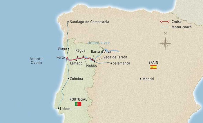 Los cruceros de 10 días por el Duero del Viking Torgil comienzan realmente el Lisboa. Desde allí, los pasajeros viajan por carretera hasta Oporto, en donde se embarcan y desde donde remontan el río hasta el muelle de Vega Terrón (Salamanca) y desde allí nuevamente por carretera hasta la ciudad de Salamanca, para finalizar otra vez a bordo del crucero en la ciudad portuguesa de Pinhão.