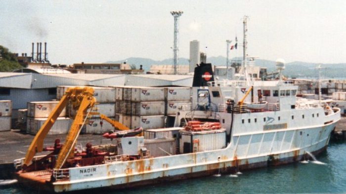 El origen del Alucia hay que buscarlo en la Francia de los años 70 del siglo pasado. En 1974, en los astilleros de Auroux, se botaba el RV Nadir, concebido para el transporte de cargas pesadas y como plataforma de buceo y operaciones submarinas. Diez años después, el buque pasaba a manos de la institución también francesa IFREMER, para servir de buque de apoyo del sumergible para altas profundidades Nautile, involucrándose en misiones como la exploración al pecio del Titanic.