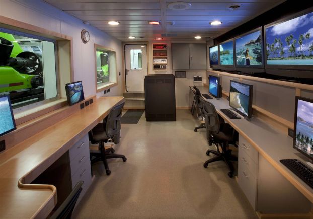 Artese también se encargó de la realización de los laboratorios (seco y húmedo), del estudio de producción videográfico y de la sala de control de inmersión, todos ellos ubicados en la cubierta principal. Las capacidades de grabación y comunicaciones del Alucia son claves para la tarea para la que fue concebido, acercar las profundidades del océano y sus secretos al gran público. El buque está equipado de tal manera que se puede grabar, editar y transmitir un documental sin bajar a tierra. Además de producir vídeos para grandes plataformas como el Discovery Channel, Alucia Productions cuenta con un canal propio en Youtube desde el que emite sus propias piezas.