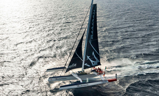 El Maserati Multi70, la embarcación utilizada para batir el récord, es un trimarán oceánico capaz de volar sobre las olas a velocidades de 40 nudos, uniendo la tecnología más moderna y el mejor rendimiento junto a la fiabilidad y la seguridad de la tripulación.