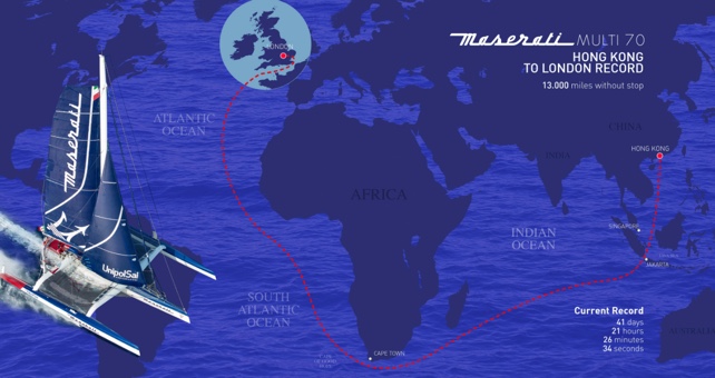 El trimarán volador Maserati de Giovanni Soldini batió el pasado mes de febrero el récord de la travesía Hong Kong – Londres, o Ruta del Té, en posesión desde hacía 10 años por el maxi catamarán Gitana XIII del francés Loïck Peyron, mejorando la marca anterior en 5 días, 18 horas, 48 minutos y 32 segundos.