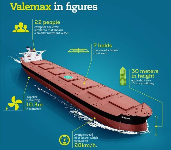 Hasta 2011, año en el que fue entregado el Ore Brasil, el buque de tranporte de hierro más grande del mundo era el noruego MS Berge Stahl. Los buques de la clase Valemax, también conocidos como Chinamax, son además los segundos en tamaño del mundo, solo por detrás de los superpetroleros de la clase TI de 440.000 toneladas de peso muerto.
