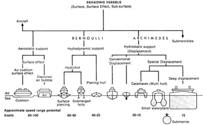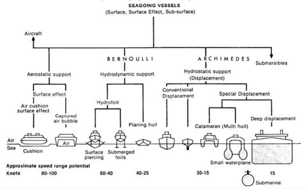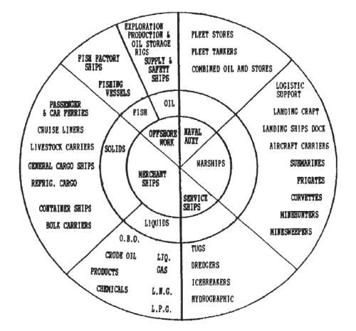 Para terminar, incluyo las para mí mejores clasificaciones de barcos (o buques, embarcaciones o navíos) que he encontrado. La primer está extraída del libro Ship Construction de David J. Eyres, y está basada en el uso que se le da al barco.