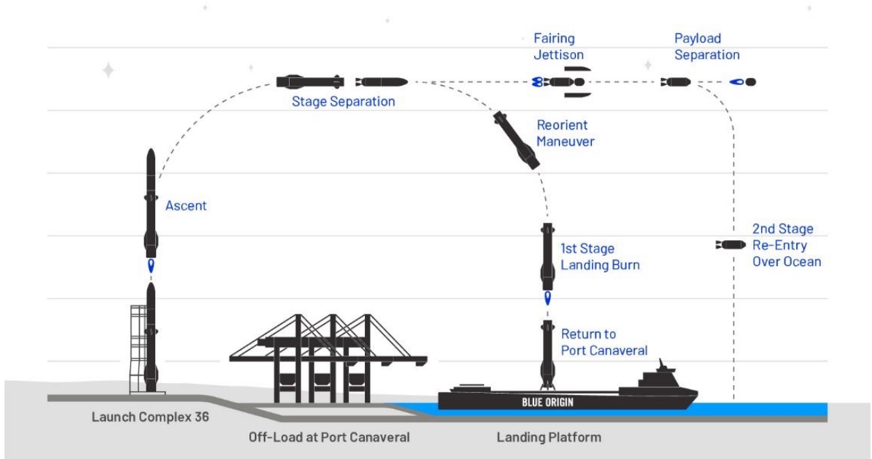 Por ahora Blue Origin solo ha lanzado vuelos suborbitales, superando por poco los 100 kilómetros de altura en cada uno de los lanzamientos de su cohete New Shepard, y recuperando la primera fase del cohete haciéndola descender verticalmente en sus instalaciones de Texas.