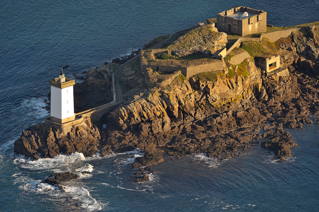 El faro de Kermorvan está colocado en el extremo de una península de la costa de la Bretaña francesa, unido al fuerte que servía como alojamiento del farero mediante un puente de granito. De 20 metros de altura y planta cuadrada, el faro se mantiene activo desde su puesta en funcionamiento en 1849.