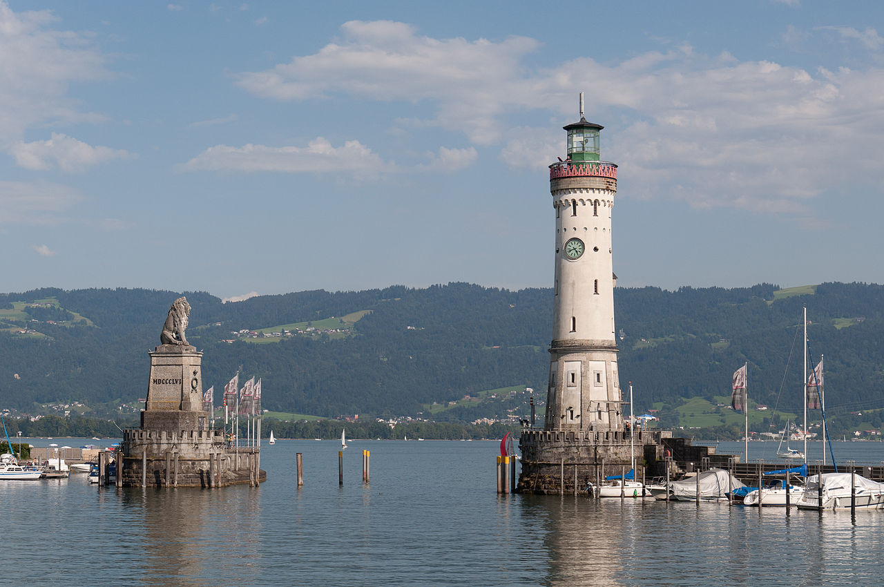 Ubicado en la orilla alemana del lago de Constanza, el faro de Lindau, de 33 metros de alto y con una circunferencia de 24 metros en su base, fue construido en 1856, y es una estructura única en el mundo de los faros gracias al reloj que lo adorna y que puede verse desde la cercana ciudad de Lindau.
