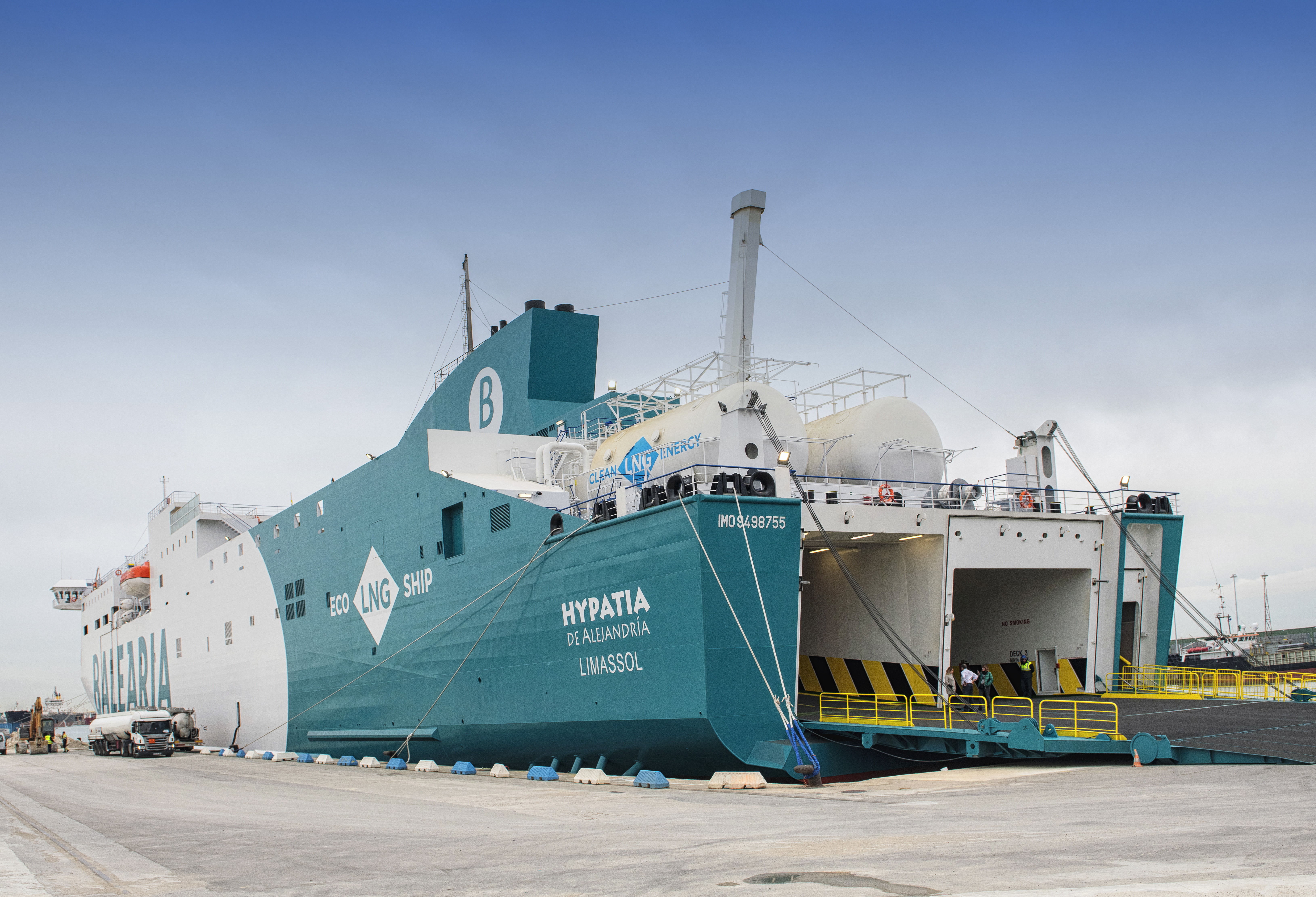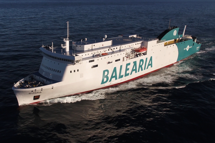 Desde el pasado enero, la flota de la naviera valenciana Baleària cuenta con uno de los ferris más modernos y ecológicos del Mediterráneo, el Hypatia de Alejandría. Destinado a la ruta que une Valencia con Palma de Mallorca, el buque cuenta con un alto nivel de tecnología y digitalización en su interior, y con unos motores duales que le permiten navegar utilizando gas natural licuado, lo que implica la reducción de las emisiones de CO2 hasta en un 35%, del NOx en un 85% y del azufre y partículas en un 100%, conllevando un efecto inmediato en la mejora de la calidad del aire y la reducción del efecto invernadero.