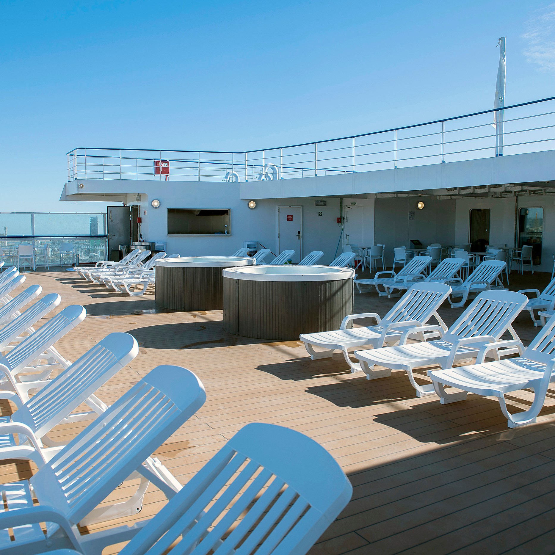 Los pasajeros disponen de una plataforma desde la que pueden acceder mediante conexión wifi a contenidos de televisión y cine, incluidos los últimos estrenos, así como juegos y una selección de libros y revistas. Esta plataforma con contenido digital a la carta también es accesible desde las televisiones inteligentes de los 120 camarotes con los que cuenta el buque, equipados también con baño completo y aire acondicionado. La oferta de ocio más tradicional se completa con una tienda, cafetería, restaurante autoservicio y a la carta, o jacuzzis en la cubierta exterior.