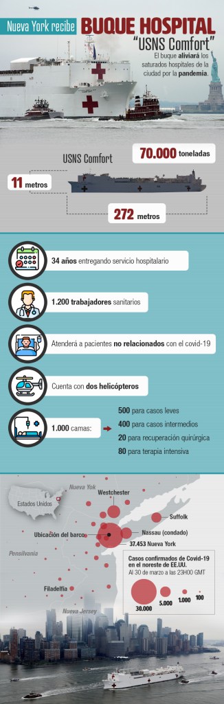 Infografía: Nueva York recibe al buque hospital USNS Comfort Juan A Oliveira / 08/04/2020 Twitter Facebook LinkedIn Haz click en la imagen para verla ampliada Infografía original de Emol. También te puede interesar: El buque hospital USNS Mercy por Juan A Oliveira 09/12/201310/01/2023 El buque hospital Africa Mercy por Juan A Oliveira 11/11/2017 El buque hospital museo Gil Eannes por Juan A Oliveira 25/11/201727/07/2023 Escribe tu correo electrónico… Suscribirse Únete a otros 791 suscriptores Si te ha gustado, compártelo: Haz clic para compartir en X (Se abre en una ventana nueva) X Haz clic para compartir en Facebook (Se abre en una ventana nueva) Facebook Haz clic para compartir en LinkedIn (Se abre en una ventana nueva) LinkedIn Haz clic para compartir en Reddit (Se abre en una ventana nueva) Reddit Haz clic para compartir en WhatsApp (Se abre en una ventana nueva) WhatsApp Más Haz clic para enviar un enlace por correo electrónico a un amigo (Se abre en una ventana nueva) Correo electrónico Haz clic para imprimir (Se abre en una ventana nueva) Imprimir Me gusta Cargando...