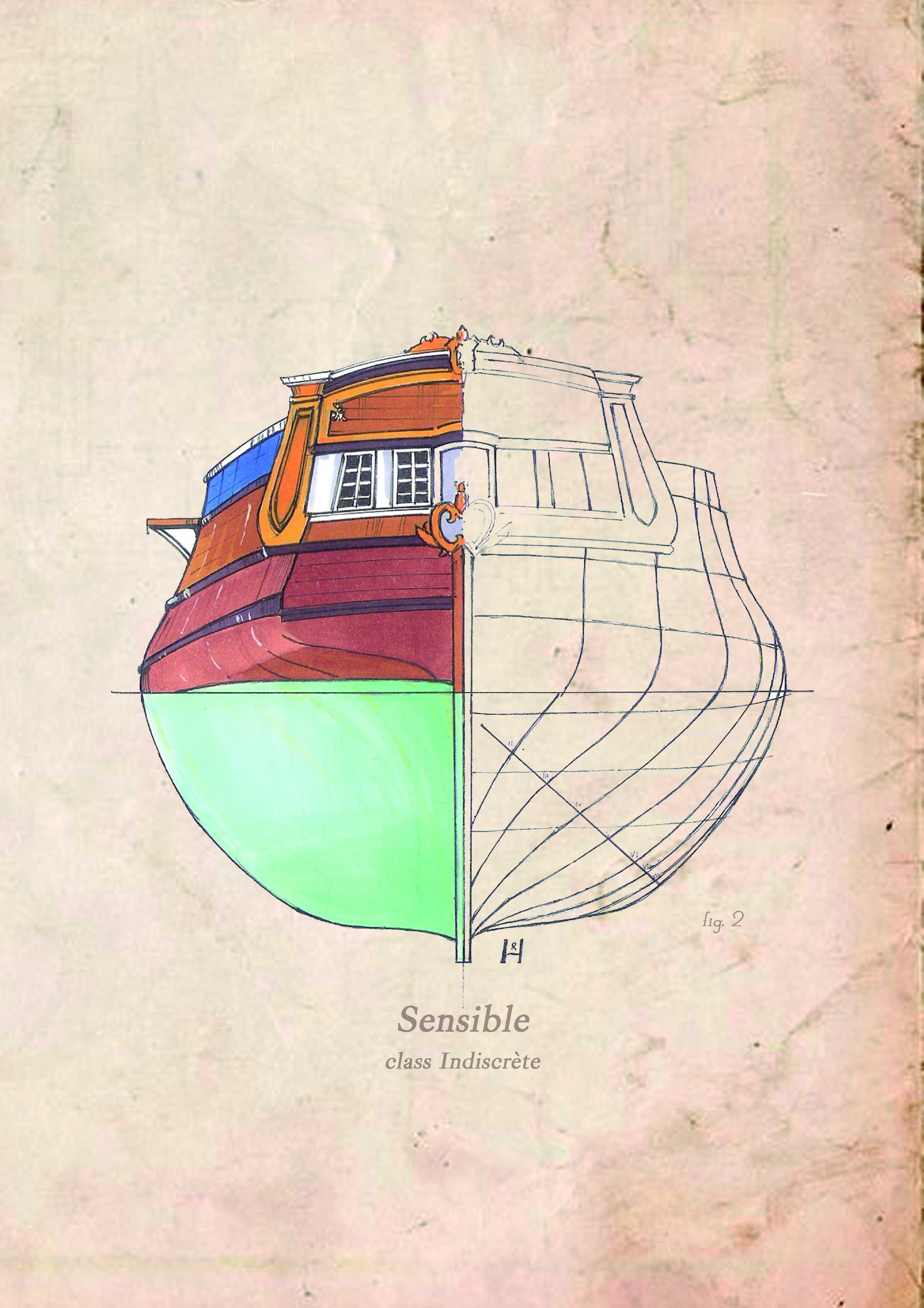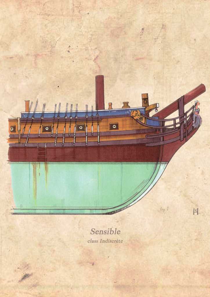 Así, el 13 de noviembre de 1779 John y sus hijos John Quincy y Charles se embarcaron en el puerto de Boston en la fragata francesa La Sensible, la misma que había traído de vuelta a Adams desde Francia unos meses antes, junto el señor Thaxter, su secretario privado, su criado Joseph Stevens y el señor Dana, secretario de la delegación y Chargé D´Affaires, y un criado de este último. La Sensible era una fragata de 12 de la clase L’Indiscrète, un buque de guerra francés caracterizado por sus cañones de 12 libras. Construida en 1767 en Indret (Nantes, Francia) siguiendo los planos de Jean-Hyacinthe Raffeau. Se trataba de un buque de 40 metros de eslora por 10 de manga, al mando del capitán Chevalier De Chavagne y tripulada habitualmente por 250 hombres, y que con los 350 que había a bordo cuando dejaron Boston tenía que encontrarse abarrotada.