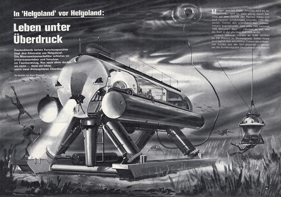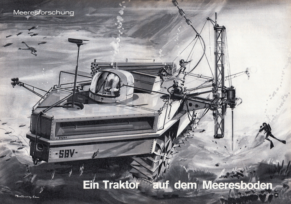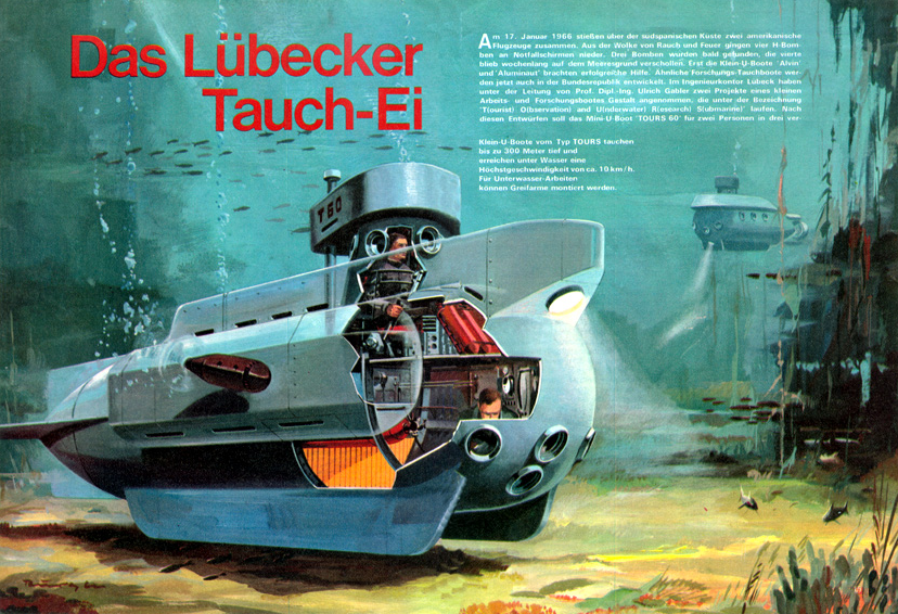 Su mayor reconocimiento llegó gracias a las imágenes desplegables de gran formato de la revista juvenil anual Das Neue Universum. Allí Bürgle dibujaba temas como automóviles con motores nucleares, aviones comerciales con tecnología supersónica o misiles orbitales para el turismo espacial. Entre todas sus ilustraciones, hoy traemos al blog algunas de las relacionadas con el transporte marino. Esperamos que os gusten.