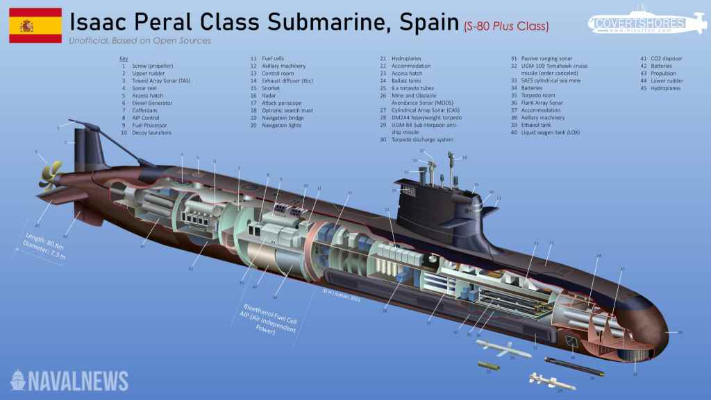 Una curiosidad aparecida recientemente acerca de la longitud estimada y características aproximadas para la nueva sección para el VLS en la versión del avanzado submarino israelí de fabricación alemana Dolphin II , la sitúa con unas dimensiones entre 2’4 y 4 metros . Lo que significa que la estimación que realicé en su dia para el S-90 ( del 11/ 05/21 ) , de 4’4 metros incluyendo en esta la del cofferdam adosado a este compartimento en la posición más cercana a popa , no hace sino acrecentar el acierto posicional y dimensional de manera muy aproximada de la posibilidad sugerida como evolución del proyecto aprovechando los mismos diseños y las diversas lecciones aprendidas durante toda su gestación y su desarrollo como producto final y respetando obviamente a las verdaderas y objetivas particularidades sobre las finalidades y extremidades fundamentales inherentes a las intencionalidades sobre este particular . Mi único deseo ha sido el de aportar ideas y sugerencias de manera sana y totalmente altruísta por mera y símple colaboración . Para mí ha sido todo un placer y un honor haber humildemente participado . Muchísimas gracias a todos por su permiso y su atención , en especial al Sr. D. Juan A. Olivera por su extraordinaria paciencia y respeto mostrado en todo momento desde que realicé mi primer comentario allá por marzo del año pasado . Espero conocerle algún dia , si Usted me lo permite .