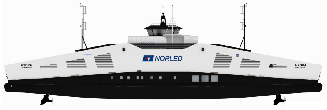 La oferta de Norled, operadora de ferries noruega, resultó la ganadora de la licitación. Su propuesta es el MF Hydra, un barco de 82,4 metros de eslora capaz de transportar a 299 pasajeros, 80 automóviles y 10 camiones a una velocidad de crucero de 9 nudos, diseñada por LMG Marin y construida por el astillero Westcon Yards de Ølen (Noruega). Exteriormente, el Hydra desafía el aspecto habitual de este tipo de embarcaciones con un aspecto futurista gracias a sus líneas angulosas. Las novedades en el diseño se extienden a la zona para pasajeros, colocada de manga a manga bajo la cubierta de automóviles, que se extiende de proa a popa para facilitar el embarque y desembarque de los vehículos.