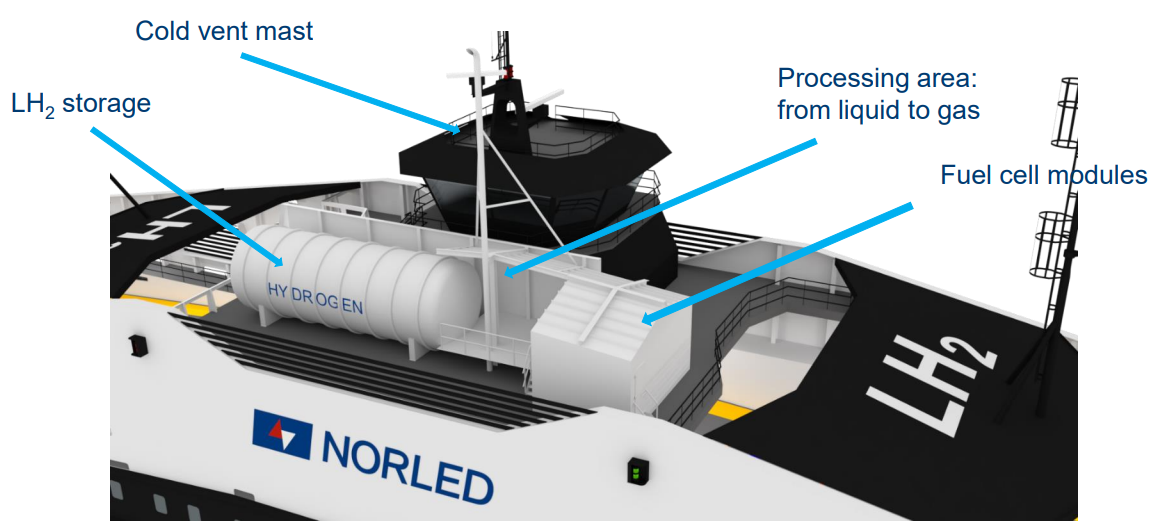 - la innovación tecnológica: el almacenamiento y repostaje del hidrógeno son actividades muy complicadas debido a las altas presiones o las muy bajas temperaturas a las que debe estar sometido; además, mezclado con el oxígeno es altamente explosivo; en el desarrollo del Hydra Norled, los diseñadores y el astillero han trabajado de manera conjunta para desarrollar una solución segura