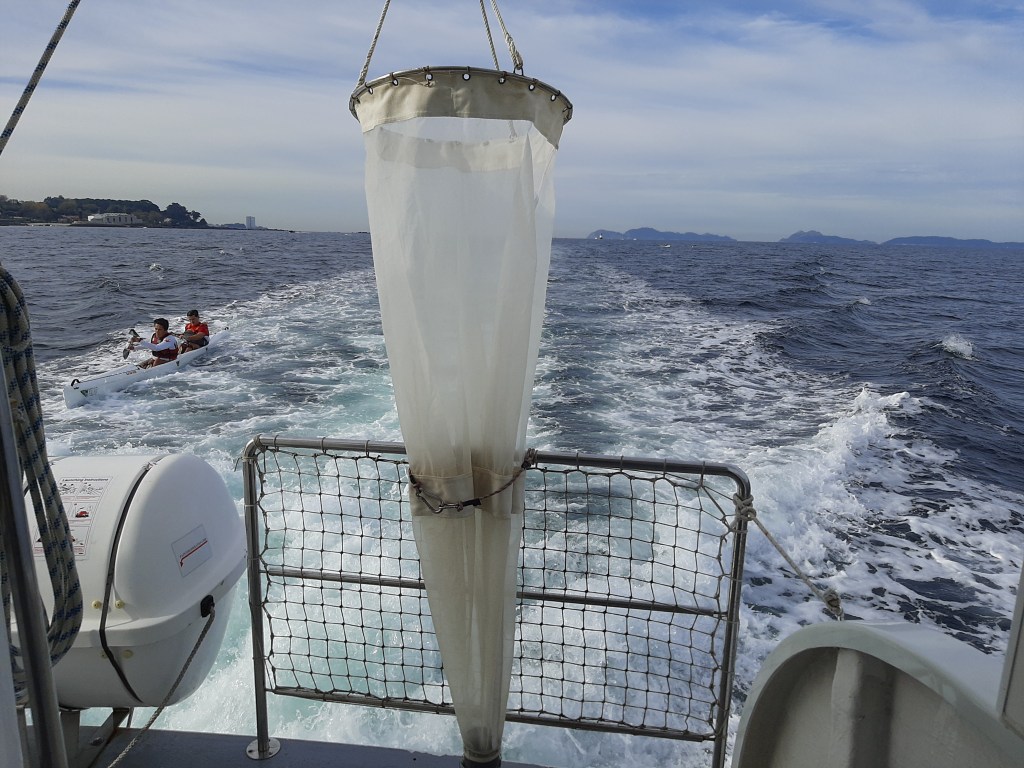 A bordo del Nautilus, ayudados por una pequeña draga (mini), un ROV y una red de plancton pudimos observar tanto la composición de los fondos de la Ría de Vigo como a sus más pequeños habitantes bajo el microscopio, todo ello apoyado por una presentación del personal del CIM sobre cómo tuvo lugar la formación de las rías, sus componentes geológicos y biológicos actuales, y los eventos diferenciadores que tienen lugar en este tipo de ecosistema.