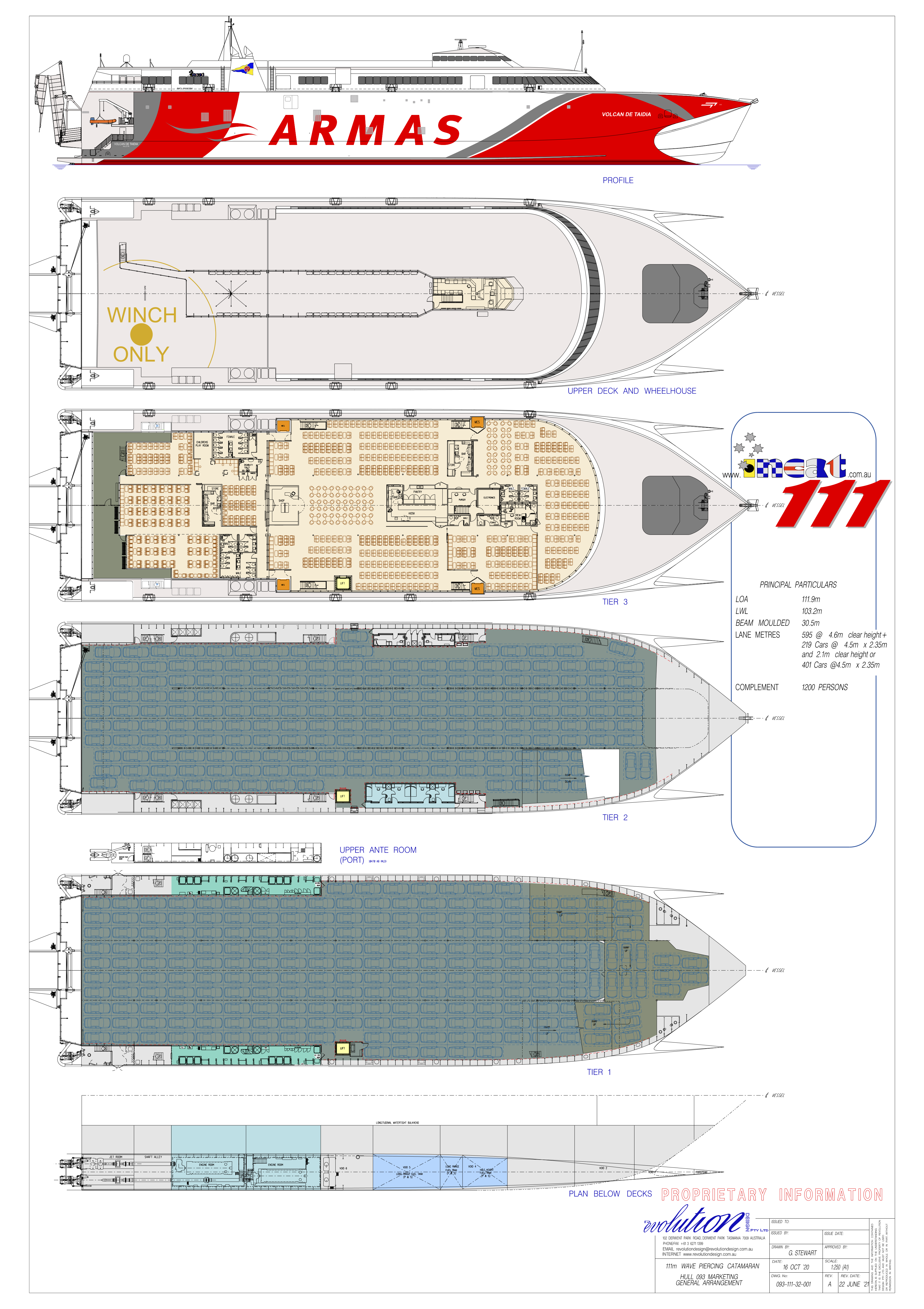 El nuevo buque, la construcción número 093 de Incat, es el sexto de la naviera construido por el astillero de Tasmania, aunque cuatro de ellos fueron adquiridos de segunda mano. Con 111 metros de eslora y 30,5 metros de manga, este catamarán de aluminio puede transportar hasta a 1.184 pasajeros repartidos en tres clases (Premium, Business y Económica) y 16 tripulantes, más 215 coches y 595 metros lineales de carga rodada en un garaje repartido entre dos cubiertas.