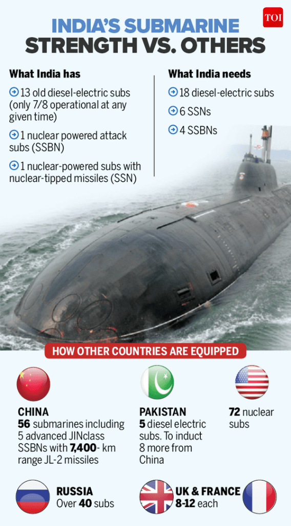 Francia, Alemania, Rusia, Suecia, España y Japón están en la lista corta para la construcción de seis nuevos submarinos para la India, con un coste estimado de 10.000 millones de euros. La infografía muestra la visión desde el país asiático de por qué esto es tan importante para su defensa.
