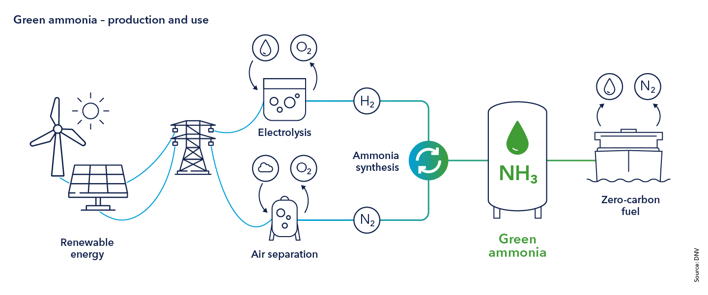 Por su parte MAN Energy Solutions cuenta con dos iniciativas en este ámbito: por un lado, en colaboración con la Universidad Kyushu de Japón comenzará este año a hacer pruebas en Copenhague con un motor de dos tiempos; por otro lado, está desarrollando el proyecto de motor para un portacontenedores de tamaño medio junto con el Instituto de Investigación y Diseño de Barcos Mercantes de Shanghai. Del resultado de todas estas iniciativas dependerá la adopción o no del amoniaco como combustible naval.