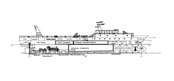 En la Disposición general que aparece en la parte inferior, corresponde a un moderno arrastrero “ramplero” en el que puede verse con claridad, la cubierta de factoría, y cuál fue la solución finalmente adoptada y que sigue hoy en vigencia.