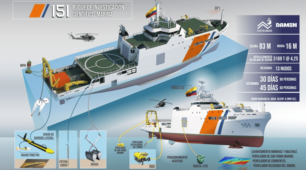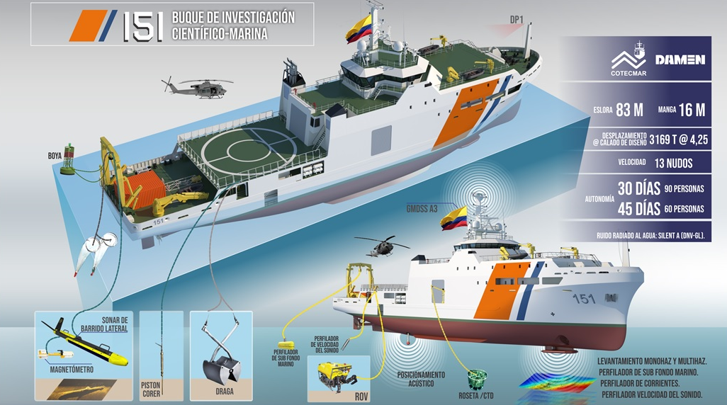 En 2019 DAMEN y COTECMAR sellaron una alianza estratégica para la transferencia de tecnologías y conocimientos desde el grupo con sede en los Países Bajos al país sudamericano. Uno de los primeros resultados de esta colaboración fue el contrato de construcción de un buque de investigación oceanográfico en Colombia encargado por la Dirección General Marítima con un presupuesto de unos 50 millones de euros, para el cual DAMEN licenció el diseño básico basado en su modelo OSRV 8316, mientras que COTECMAR se encargó de la ingeniería de detalle y producción, así como la propia construcción en su astillero de Cartagena de Indias, con un total de 245.000 horas de trabajo entre empleos directos e indirectos.
