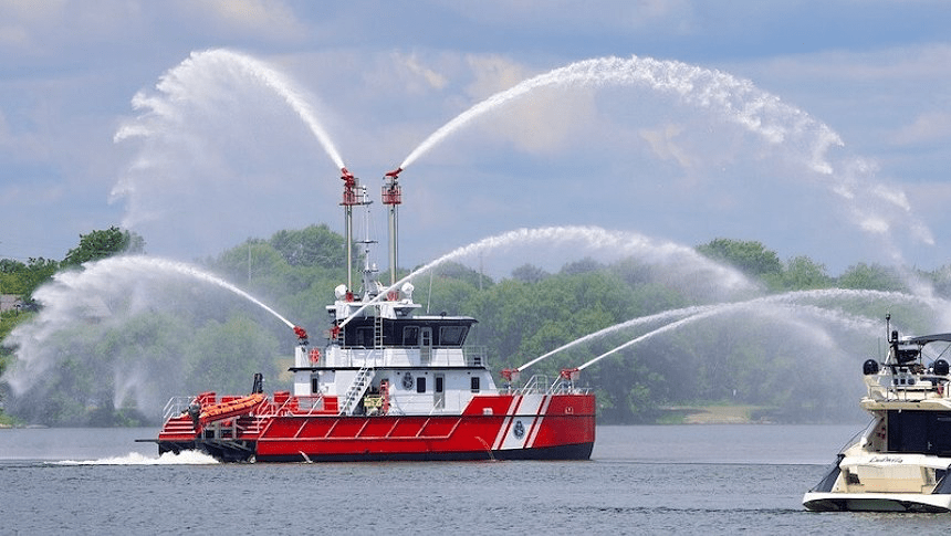 Hoy en día los modernos buques contraincendios son capaces de lanzar cientos de miles de litros de agua por minuto a distancias de más de cien metros gracias a las bombas y monitores con los que están equipados. Uno de ellos, construido por MetalCraft Marine y entregado recientemente a la Kuwait Fire Force, ha sido elegido por WorkBoat como buque del año 2022.