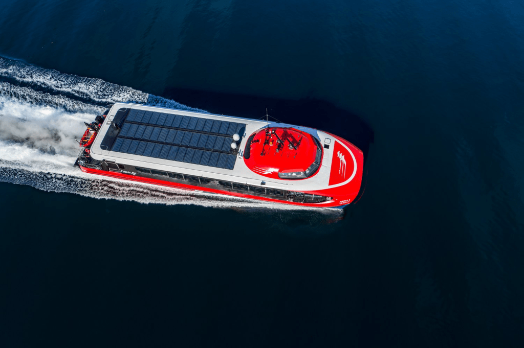 A plena carga, estas embarcaciones puede alcanzar los 32,2 nudos de velocidad máxima, empujadas por dos propulsores a chorro de agua KaMeWa S56-4 de Kongsberg, alimentados por dos generadores Caterpillar C32 de 1.081 kW cada uno. La optimización de las formas del casco llevó a los diseñadores a aumentar el volumen en proa para ganar flotabilidad y que incluso a máxima velocidad el buque pueda enfrentarse a grandes olas sin que la eficiencia de la marcha ni la comodidad del pasaje se vea afectada.
